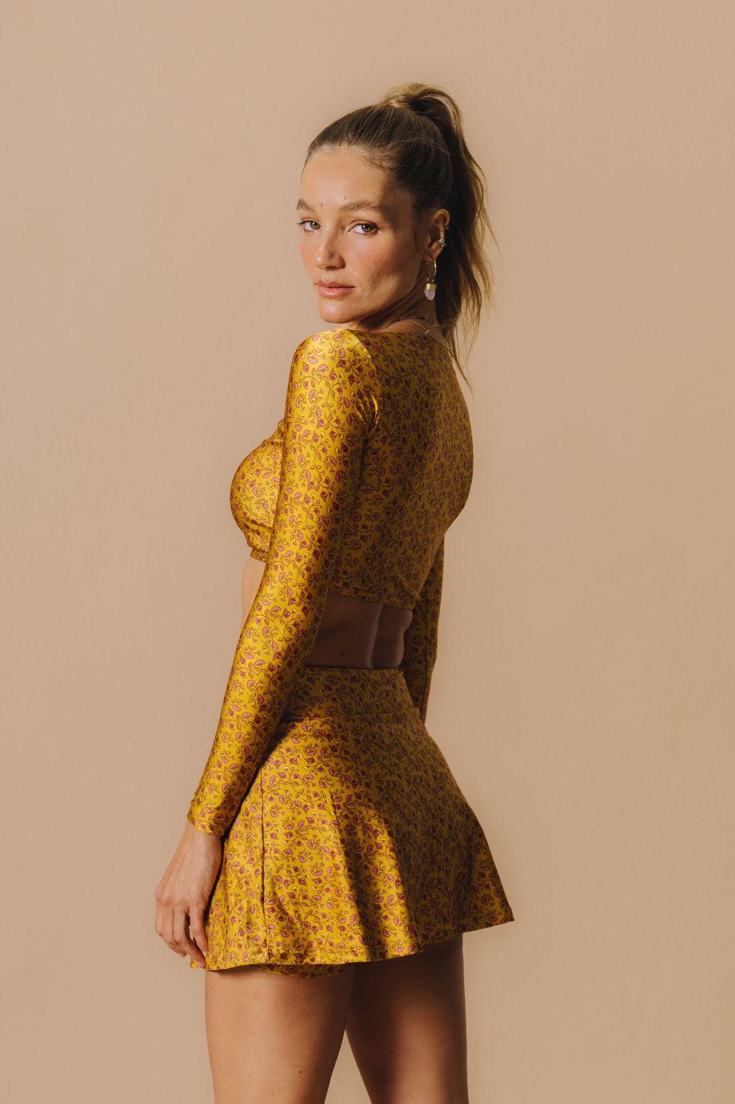 Top cropped manga longa Sunset Tribe